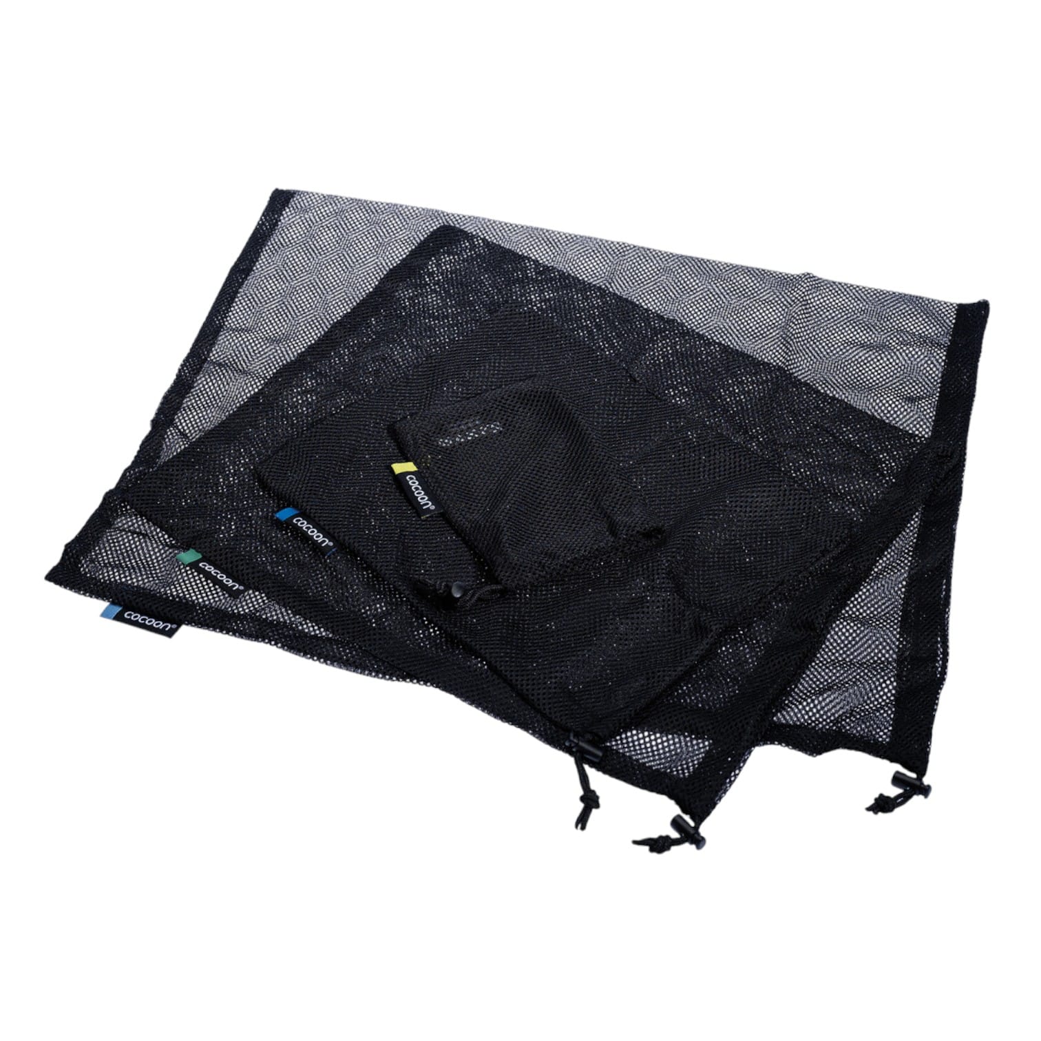 A set of four handy mesh stuff sacks in different sizes to organize your luggage in bags, suitcases and backpacks. With different color tags for each size.